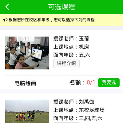 祝賀公園路小學微信選課系統上線 熱烈祝賀公園路小學微信選課系統成功上線。該系統由柳州市啟程網絡科技研發,具有良好的架構,可容納200... 查看詳細